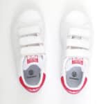 ..Η παιδική ηλικία είναι γεμάτη πρωτιές. Τα πρώτα βήματα. Η πρώτη μέρα σχολείο. Το πρώτο τους δοντάκι. Και τώρα τα πρώτα τους Stan Smith. Αυτά τα παιδικά παπούτσια τα ακολουθούν σε ακόμα μια πρωτιά. Στα πρώτα τους βήματα για έναν πλανήτη χωρίς πλαστικό χάρη στα ανακυκλωμένα vegan υλικά. Τα ελαστικά λουράκια τους επιτρέπουν να τα φορούν μόνα τους.