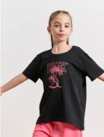 .Παιδικό κοντομάνικο t-shirt για κορίτσια oMε στρογγυλή λαιμόκοψηoΔιακοσμείται με στάμπα στο μπροστινό μέροςoΑπαλό βαμβακερό ύφασμα oΚανονική εφαρμογήoΣύνθεση 100% βαμβάκι.
