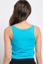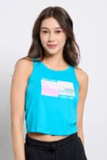.Γυναικείο αμάνικο crop top oΔιαθέτει στρογγυλή λαιμόκοψη oΜε στάμπα στο μπροστινό μέρος oΑπαλή υφή oΚανονική εφαρμογή oΣύνθεση από 50%modal και 50%βαμβάκι oΤο μοντέλο φοράει μέγεθος S.