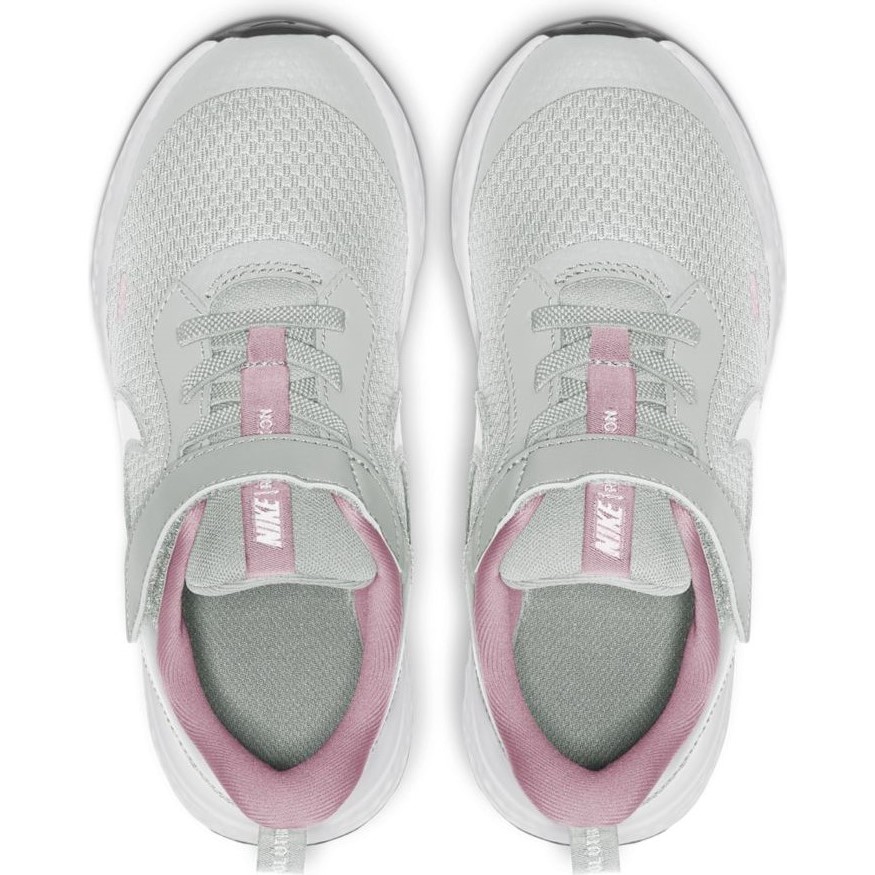 Τα Nike Revolution 5 επιτρέπουν στους μικρούς αθλητές να τρέχουν, να παίζουν και να διασκεδάζουν. Το ανθεκτικό δέρμα προσφέρει στήριξη στα μικρά ποδαράκια, ενώ η αντικραδασμική προστασία από αφρό εξασφαλίζει επαναστατική άνεση. Το κλείσιμο με λουράκι διευκολύνει την εφαρμογή και την αφαίρεση του παπουτσιού..